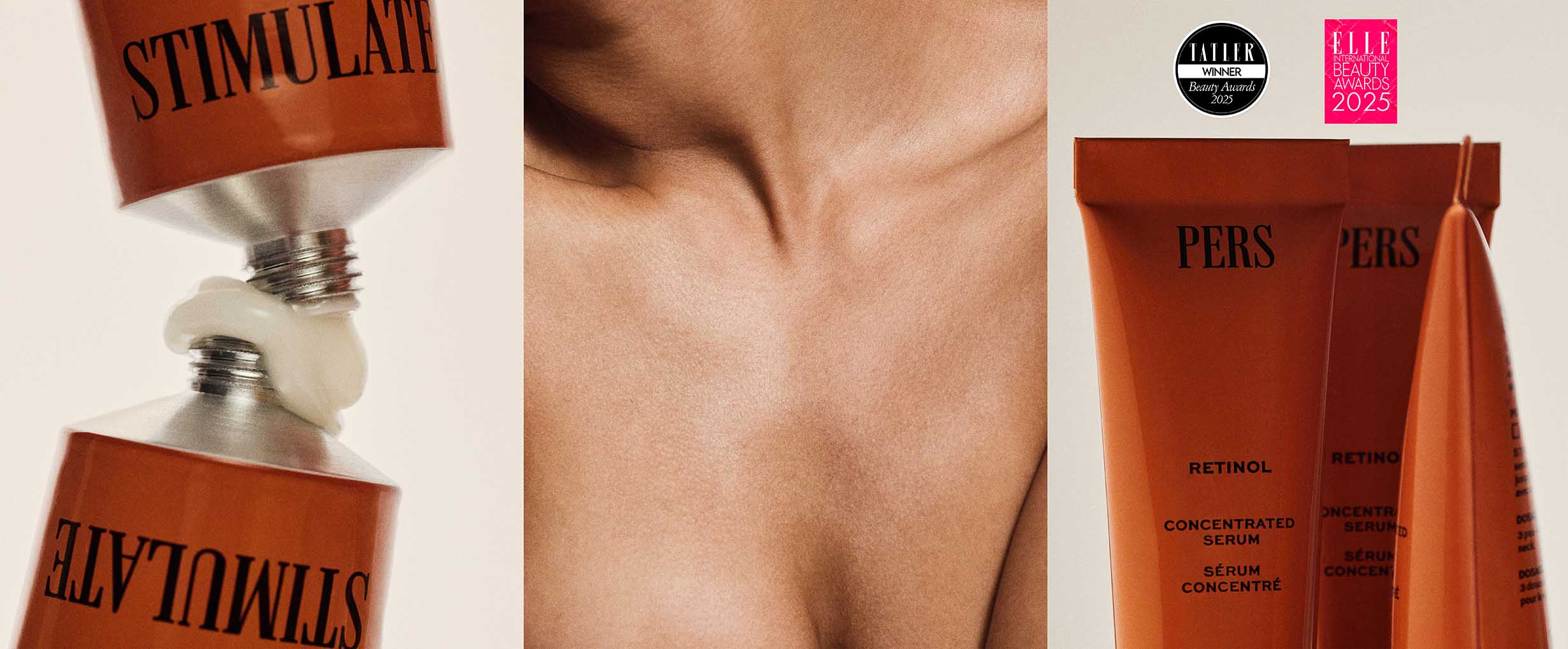 PERS est une routine de soins courte, comprenant des actifs réputés comme la vitamine C et le rétinol pour des résultats visibles et durables.