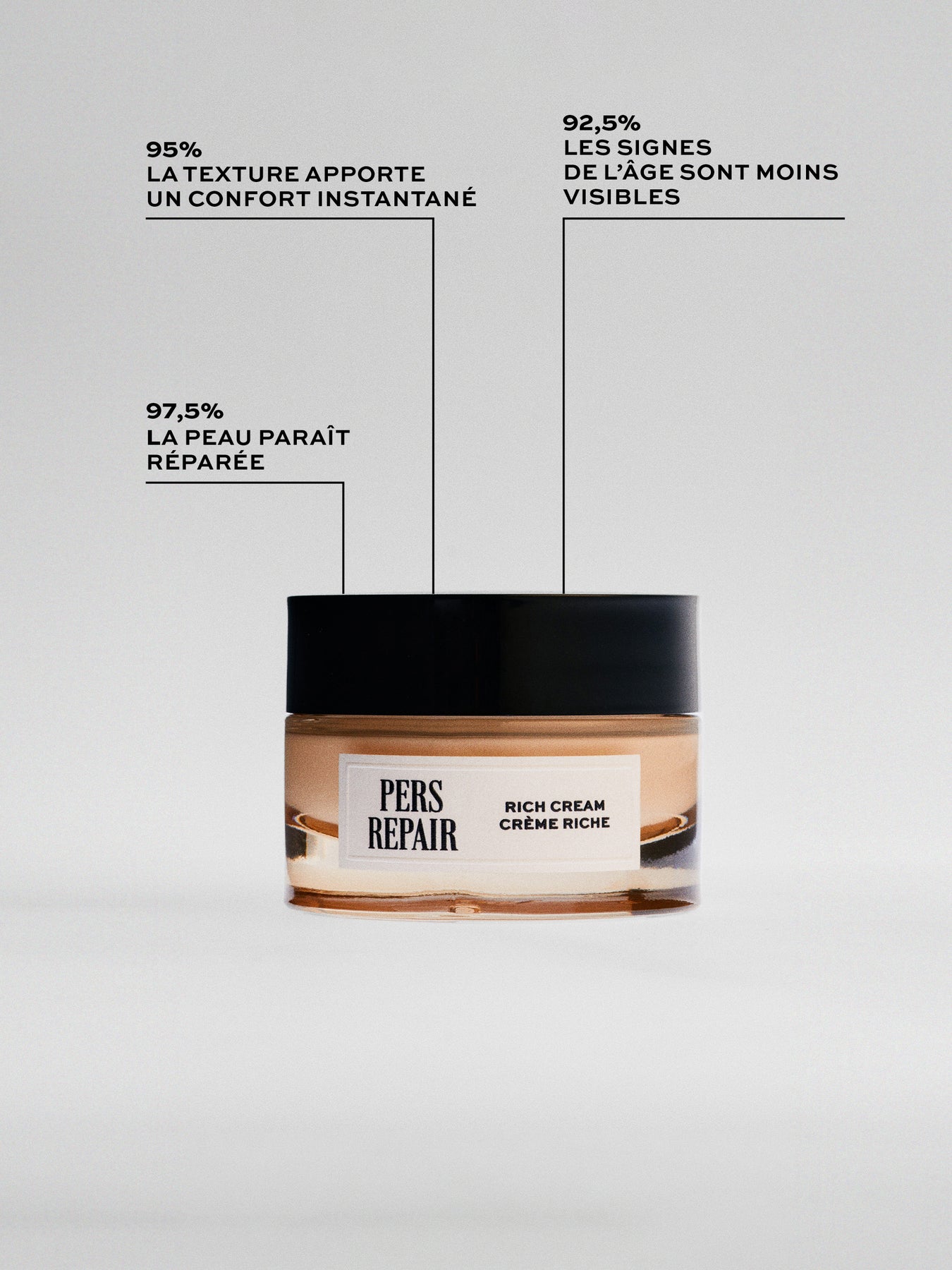 PERS Rich Cream has been formulated to support the skin's night-time cell renewal cycle. We recommend using it in the evening before going to bed, alternating with a STIMULATOR treatment such as the PERS Retinol Concentrate Serum.
