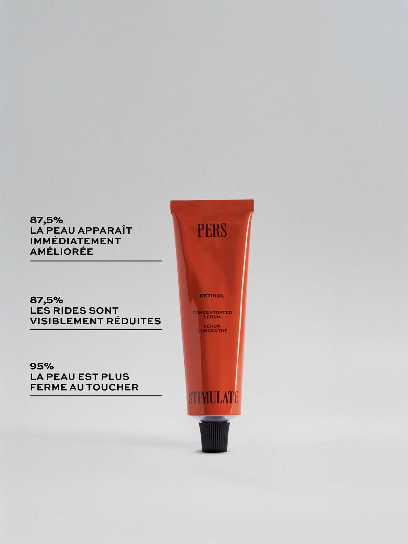 Les esters de rétinol conviennent donc particulièrement aux peaux sensibles ou aux personnes qui utilisent du rétinol pour la première fois. Nous avons privilégié cette forme dans le Sérum au Rétinol PERS pour garantir une haute tolérance sans impact conséquent sur l'efficacité, pourvu que le rétinol soit appliqué dans la durée, plutôt qu'en cure.